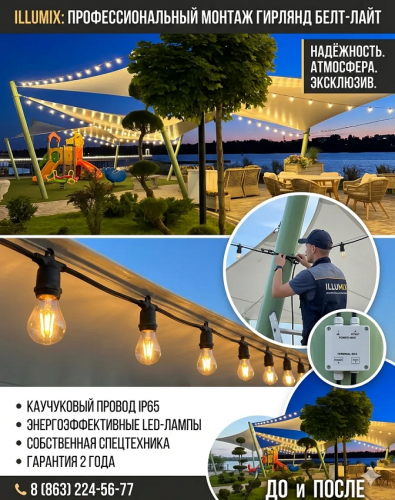 · Надежный монтаж: Мы имеем большой опыт работы с крупными объектами, включая ресторанные комплексы на Левом берегу Дона, где освещение должно выдерживать повышенную влажность и ветровую нагрузку.